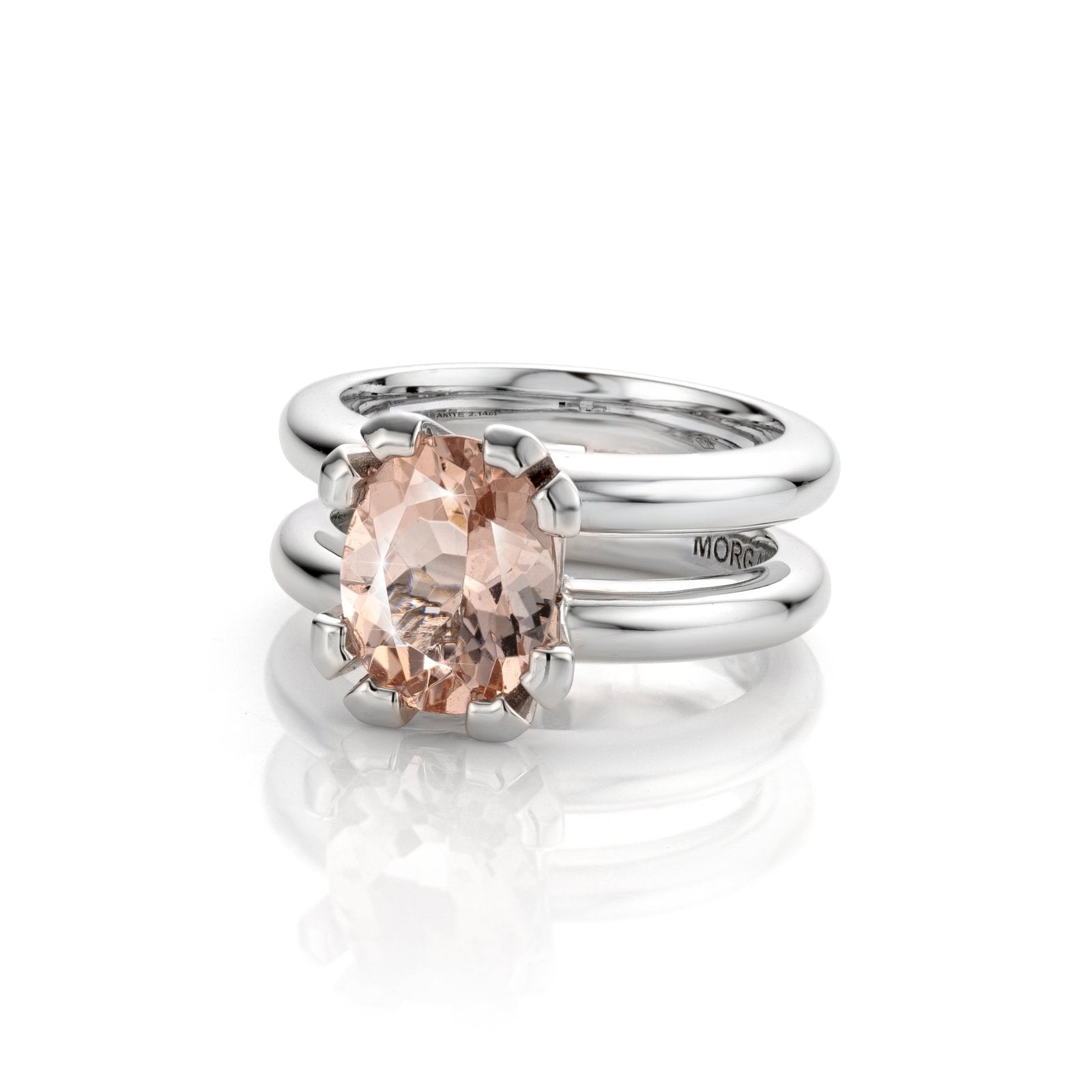 JL Buggy Morganite Ring, 18K White gold, set with a 2.14ct Oval-cut Morganite